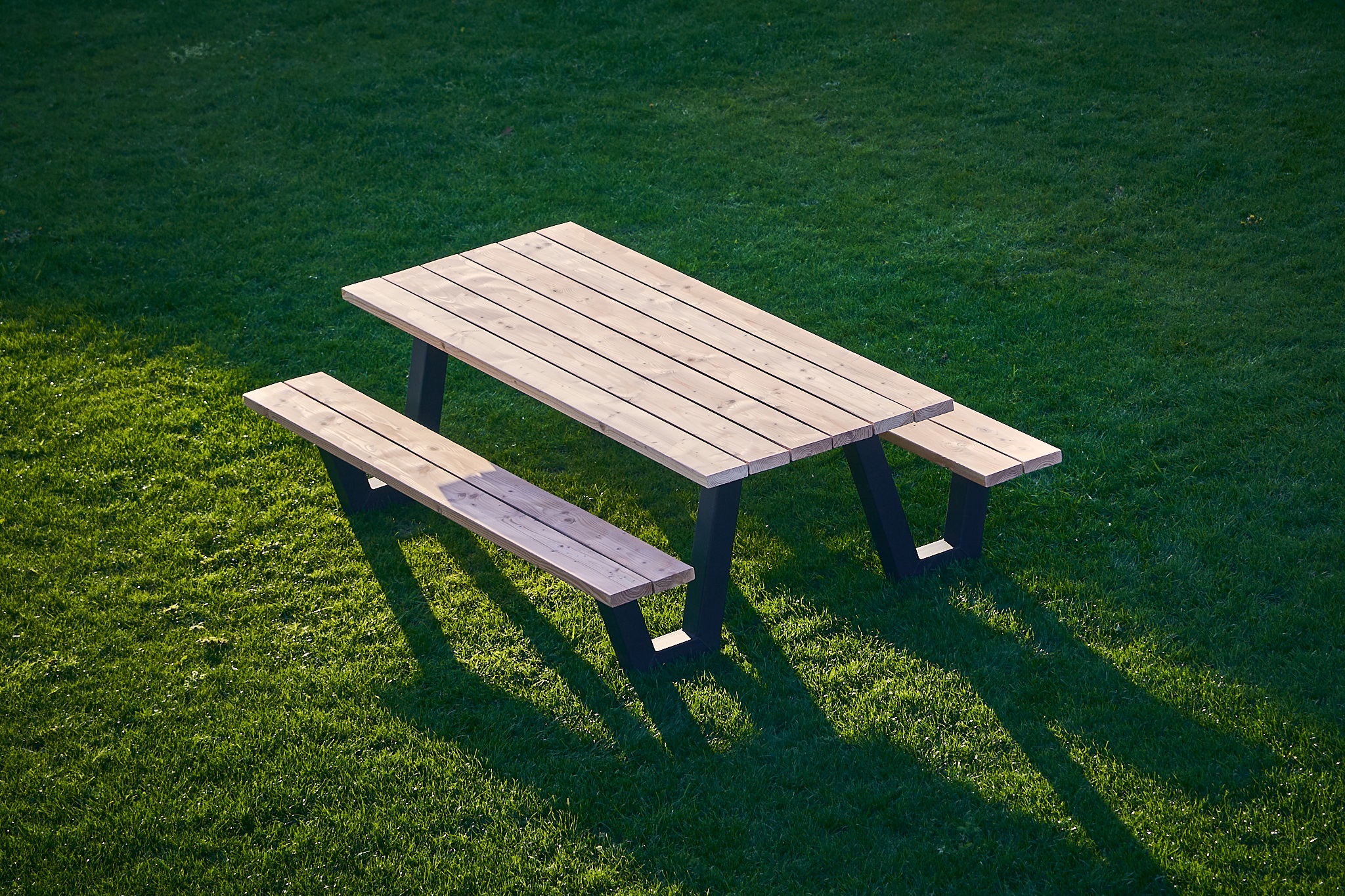 Prachtige Douglas picknicktafel + banken met stalen Nop model poot. Het tafelblad en bank bladen zijn gemaakt van Douglas hout. Doordat wij het gehele proces zelf in de hand hebben garanderen wij de hoogste kwaliteit voor de beste prijs. Het hout wordt vakkundig gedroogd en bewerkt, wij zorgen er altijd voor dat al het hout met een FSC keuring wordt afgegeven. Een Nano coating die wordt aangebracht in combinatie met de kieren van 7 á 9 mm tussen de delen zorgt ervoor dat regenwater er altijd direct afloopt en de tafel dus zo het gehele jaar buiten kan staan! Het tafelblad wordt altijd netjes glad afgewerkt en is gemakkelijk met een vochtige doek schoon te maken. De tafelbladen zijn +- 45mm dik massief! Let op dit is een wat hoger model Picknicktafel. De stalen poten worden compleet gepoedercoat, hierdoor krast het niet als u er met de voet of stoel tegen aan komt. Ook gaat het hierdoor niet roesten, ideaal in gebruik dus!