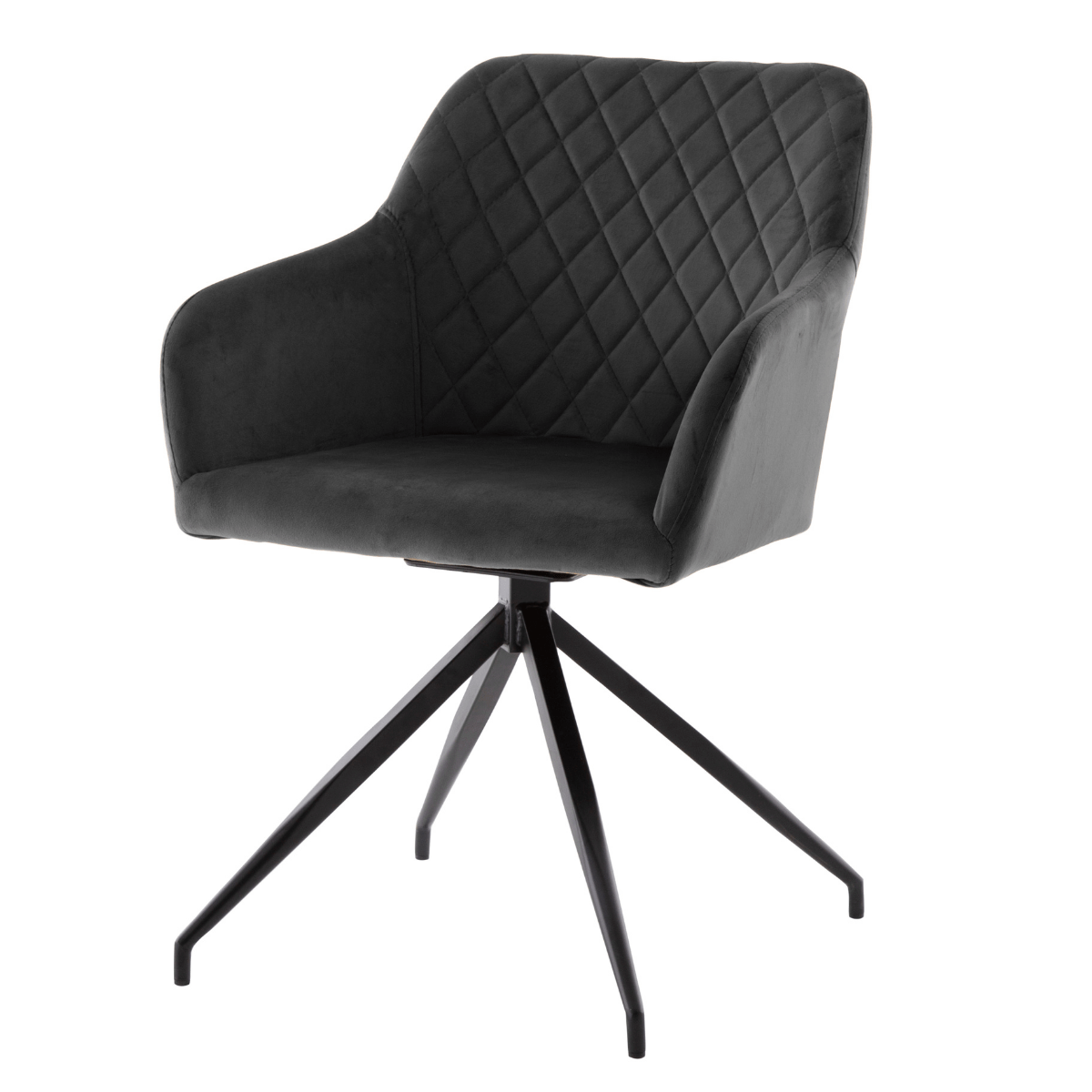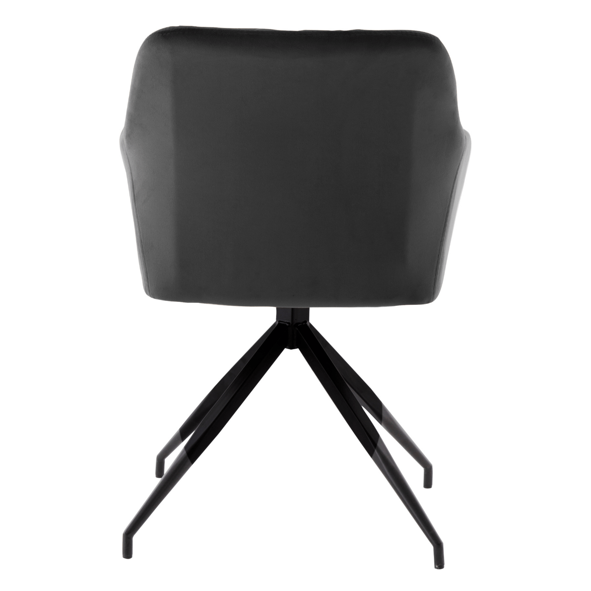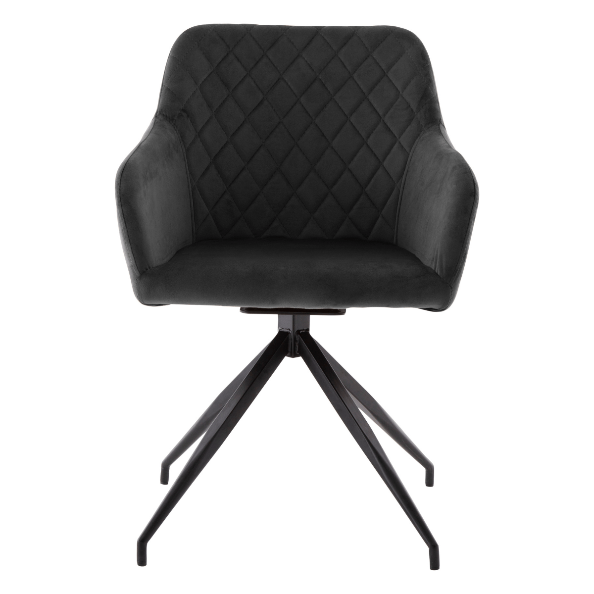 Amy armstoel velvet zwart heeft een luxueuze uitstraling en is uiterst comfortabel. Daarnaast is deze stoel ook nog 180 graden draaibaar. Dit zorgt ervoor dat er niet met stoelen geschoven hoeft te worden. Je stapt makkelijk in en uit de stoel. Daarnaast draait de stoel zelf weer terug naar zijn oorspronkelijke positie. Ideaal! De zitting is bekleed met zacht velvet voor een fijn zitcomfort. De rugleuning is voorzien van een geruit stiksel. Armstoel Amy is verkrijgbaar in vier hippe kleuren: champagne, zwart, groen en goud. De stoel staat op een stevige vierpoot van zwart gepoedercoat staal. Doordat eetkamer armstoel Amy voorzien is van armleuningen is het mogelijk uren na te tafelen met je favoriete tafelgasten.