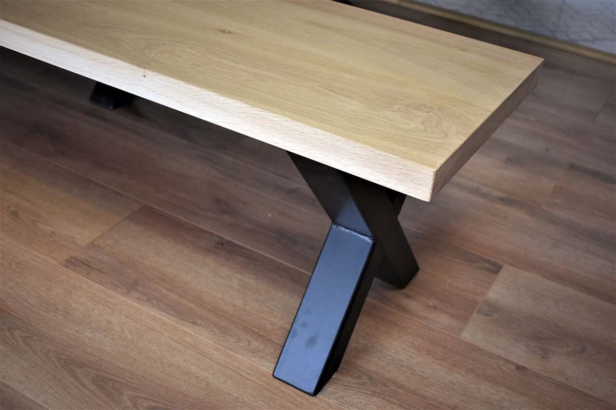 De tafelpoten worden los van het tafelblad geleverd, er zitten zelf tappende schroeven bij die niet hoeven voorgeboord te worden. Zo kunt u zelf ter plekke de gewenste tussenruimte bepalen. De maximale tussenruimte is te berekenen als volgt: Lengte tafel – 25cm = maximale tussenruimte.