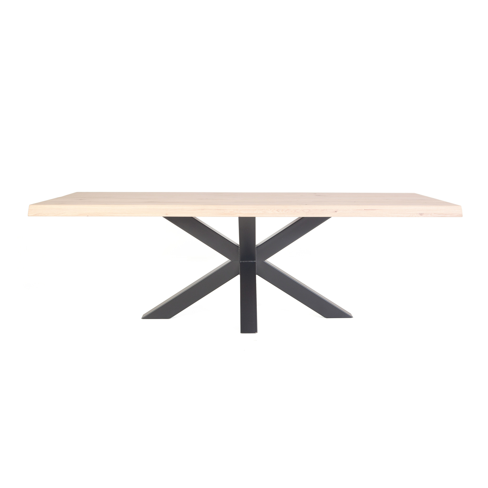 Eiken boomstamtafel met stalen 3D spin poot