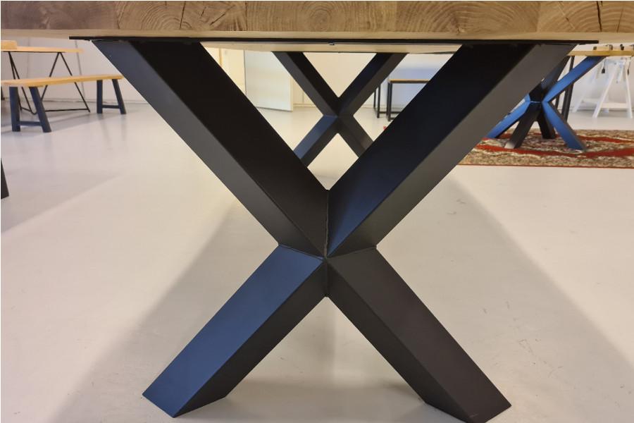 Eiken boomstamtafel met stalen X Diamand