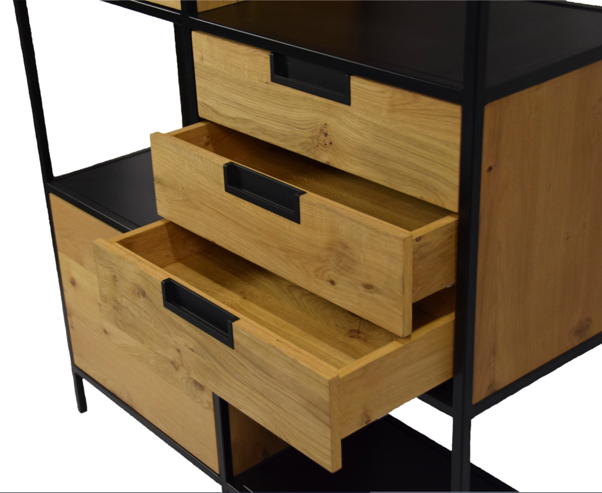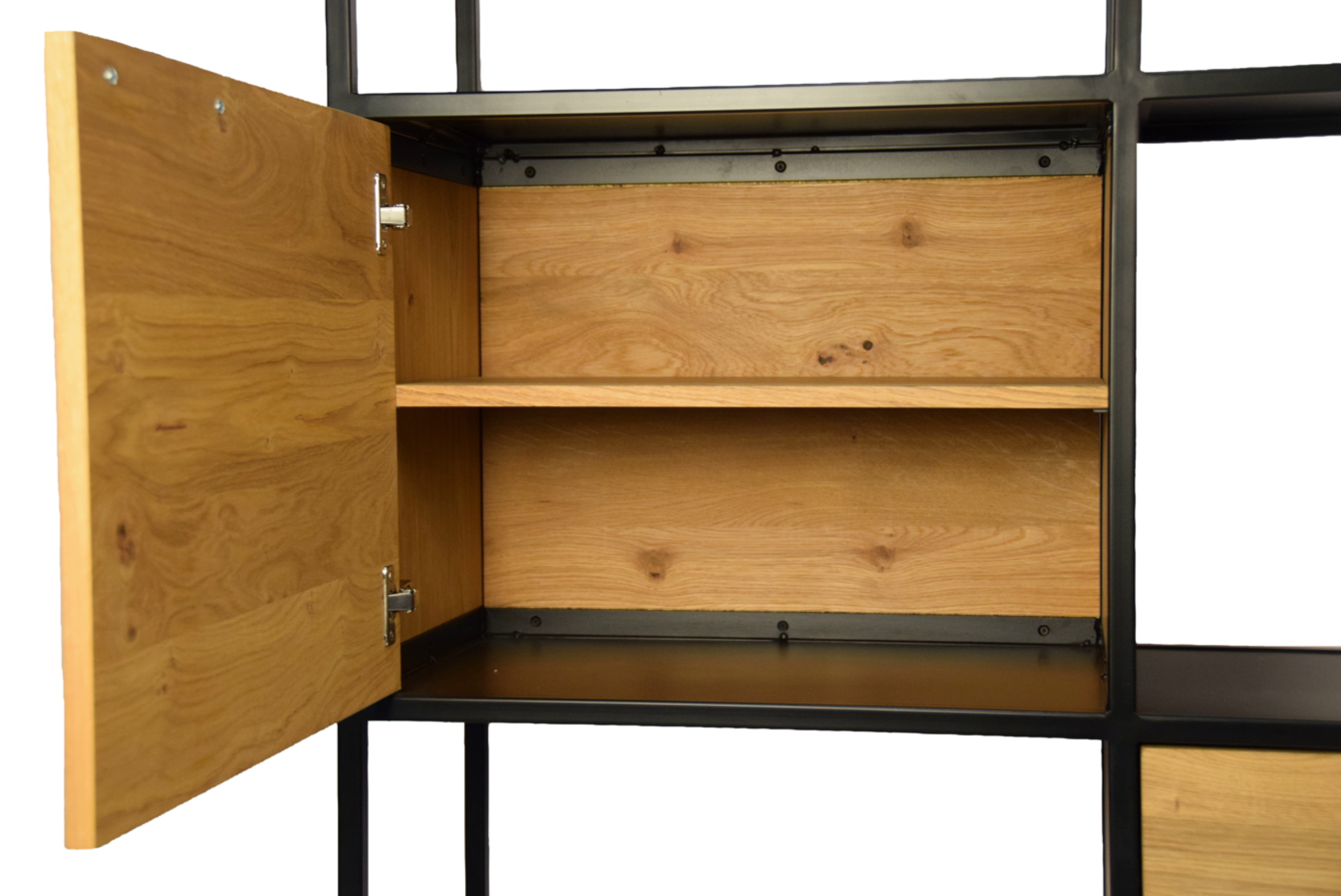 Het meubel is vervaardigd uit europees eikenhout met prachtige eiken accenten, wat zorgt voor een eigentijdse uitstraling die past bij verschillende interieurstijlen.