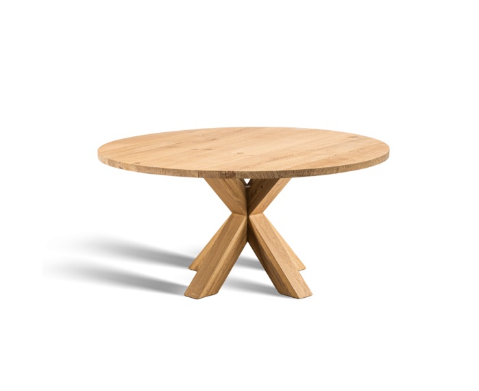 Prachtige eiken eettafel rond met eikenhouten 3D poot. Het eiken tafelblad en de eiken tafelpoot zijn gemaakt van eikenhout afkomstig uit Frankrijk, doordat wij het gehele proces zelf in de hand hebben garanderen wij de hoogste kwaliteit voor de beste prijs. Het hout wordt vakkundig gedroogd en bewerkt, wij zorgen er altijd voor dat al het hout met een FSC keuring wordt afgegeven. Het tafelblad wordt altijd netjes glad afgewerkt en is gemakkelijk met een vochtige doek schoon te maken. De tafelbladen zijn +- 42mm dik massief! Standaard wordt de tafel geleverd met een verjongde rand, indien u anders aangeeft. De hoogte van de grond af gemeten tot aan bovenkant tafelblad is +-76,5cm.