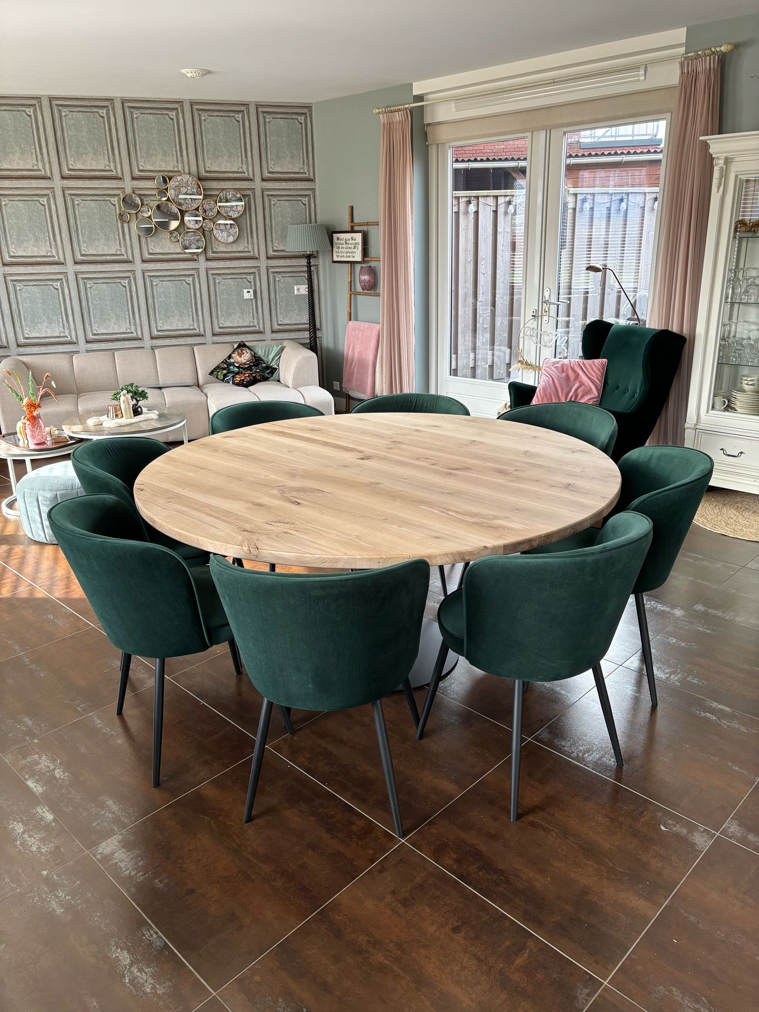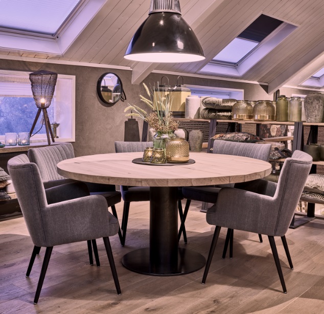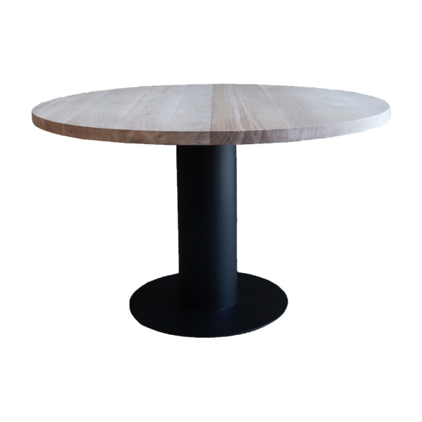 Eiken eettafel rond met stalen buis poot