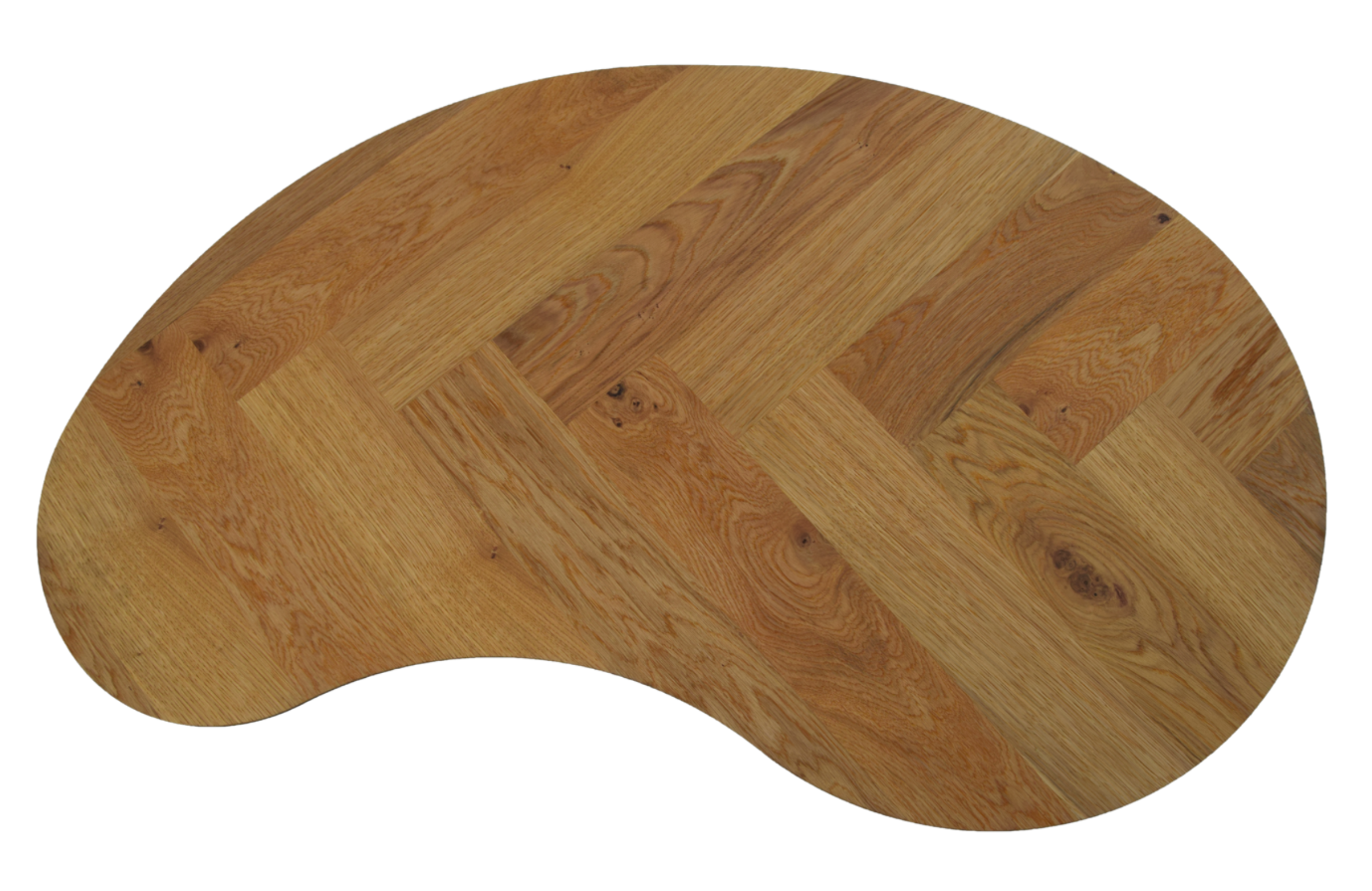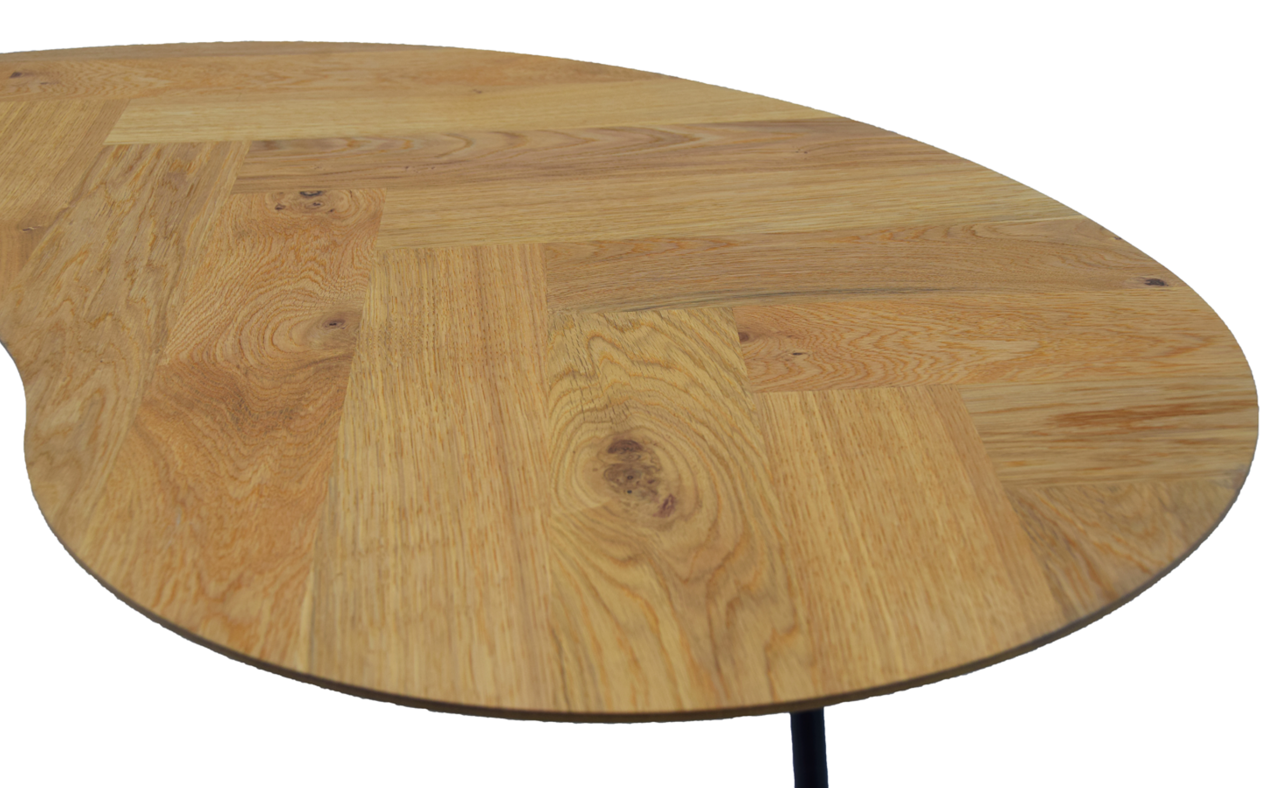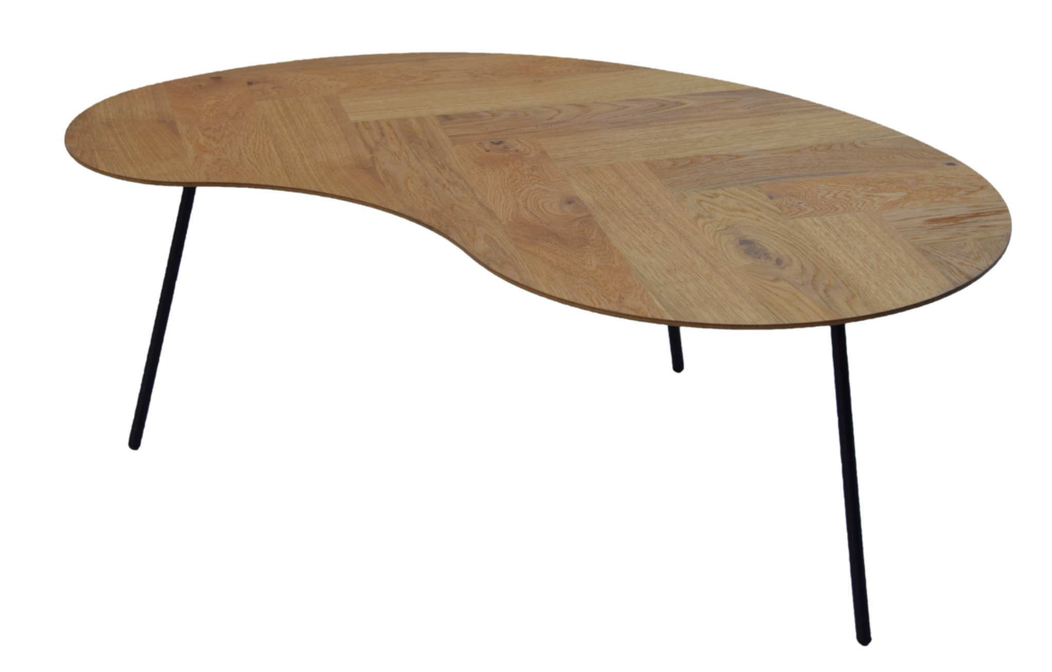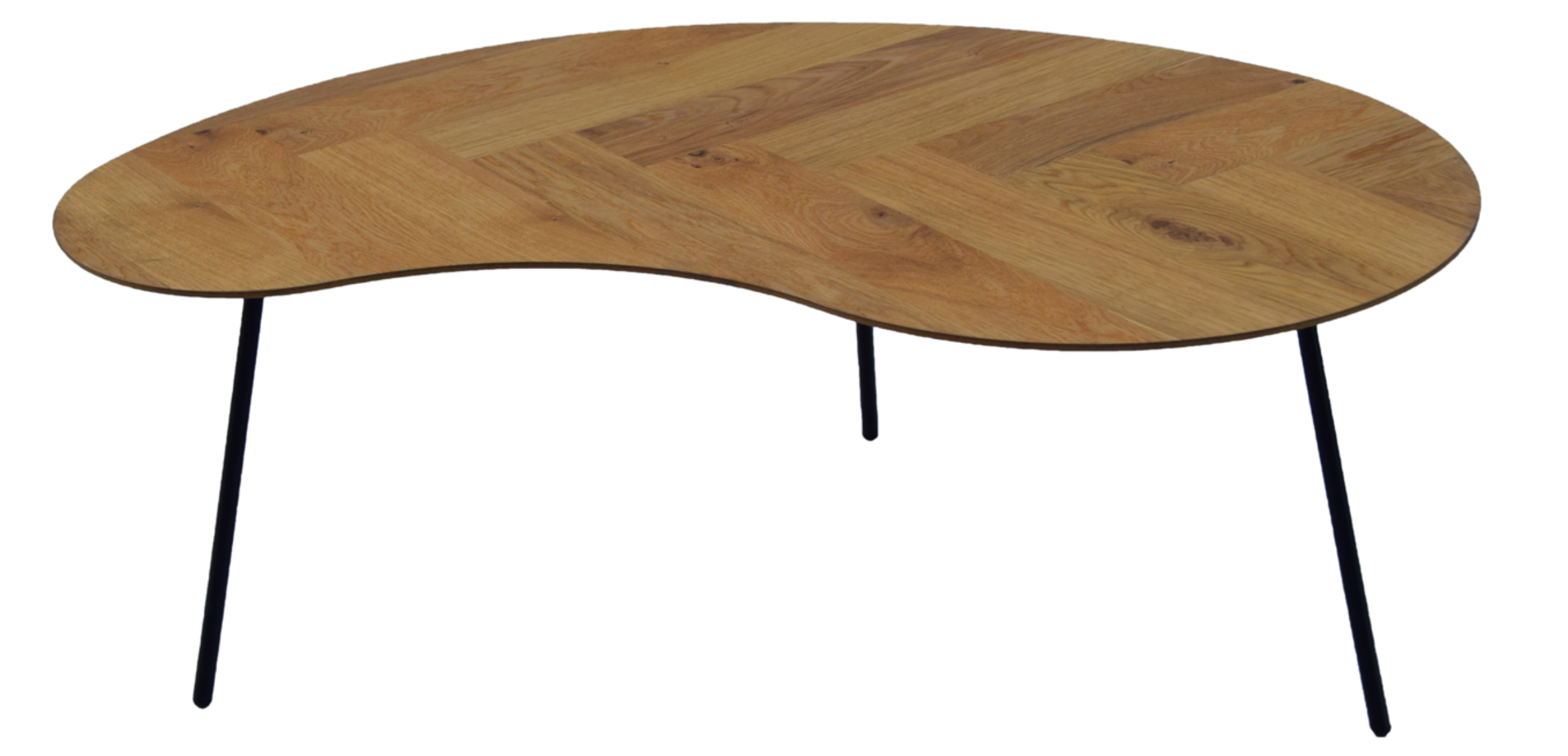 De Manhatten salontafel is een echte blikvanger. Het eiken blad met visgraatpatroon straalt klasse uit, terwijl de organische vorm het geheel speels en eigentijds houdt. Perfect voor wie houdt van natuurlijke materialen met karakter.