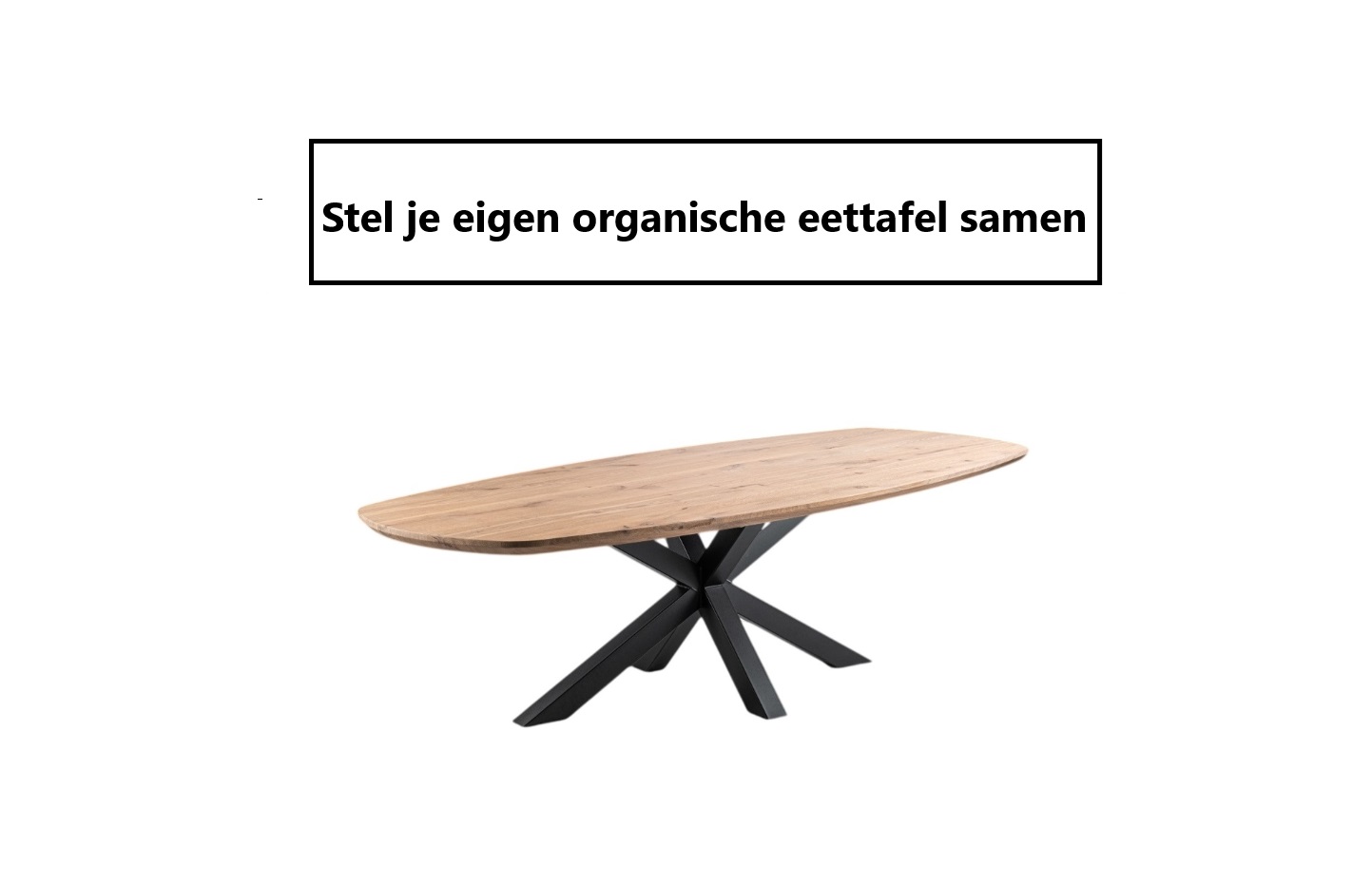 Bij Tafelplein.nl kan u zelf een organische eettafel samenstellen tot op de centimeter nauwkeuring. Daarnaast kan u er ook voor kiezen om alleen het tafelblad te bestellen, maar ook met een stalen of houden onderstel. Verder kan u het model van de tafelblad ook zelf bepalen, kies bijvoorbeeld uit een linker of rechter model en bepaal direct ook de gewenste kleur.