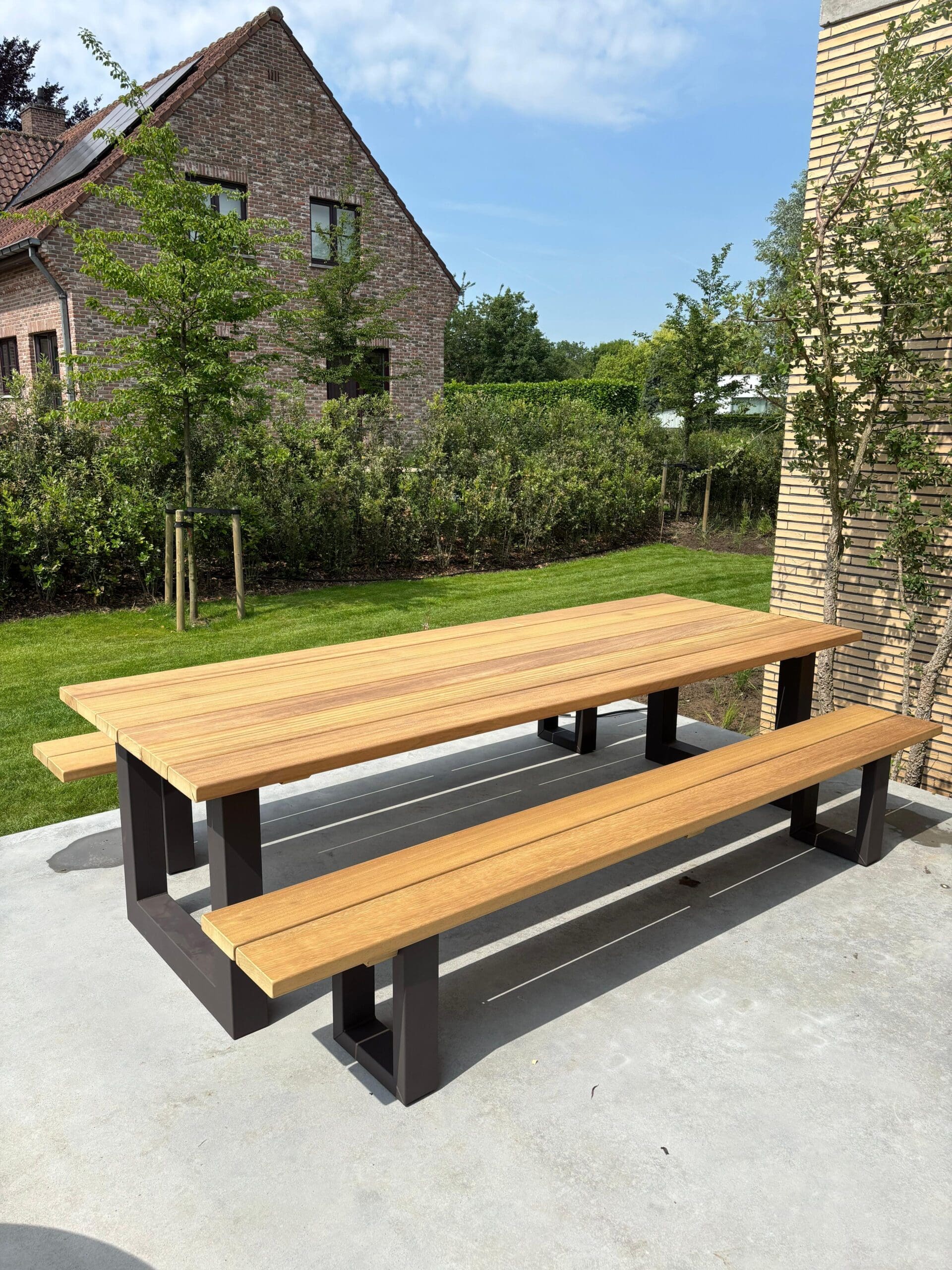 Deze tuintafel stel je helemaal zelf samen. Kies afmetingen, materialen en afwerkingen die passen bij jouw tuin en wensen.