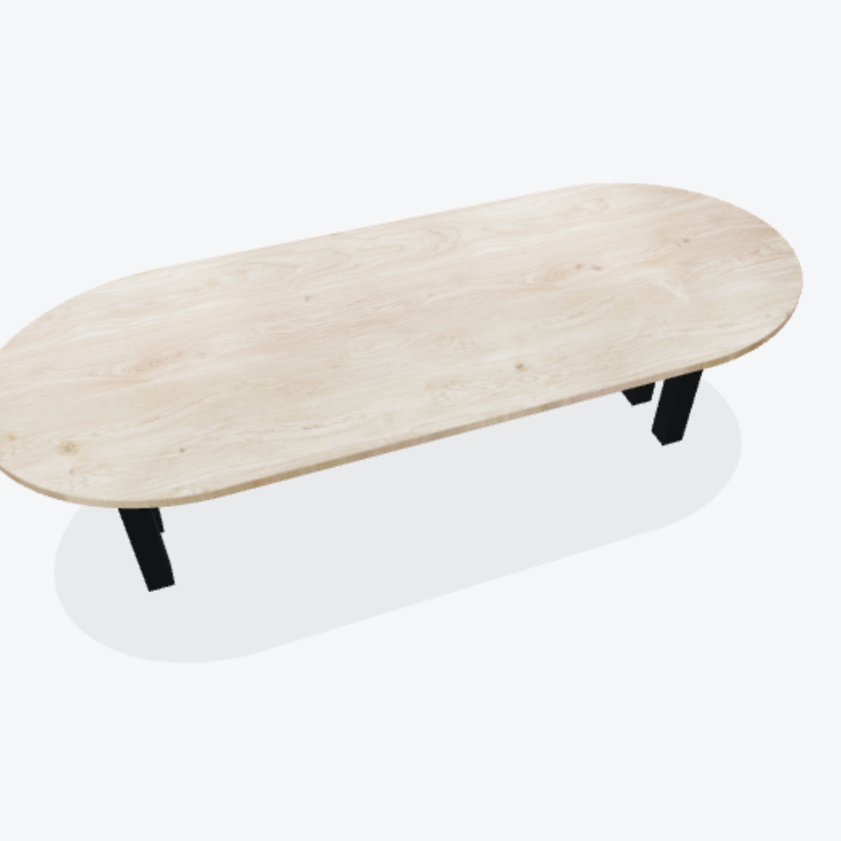 Half Ovaal met 4 Blokpoten – 2.00 × 0.90 × 0.05m