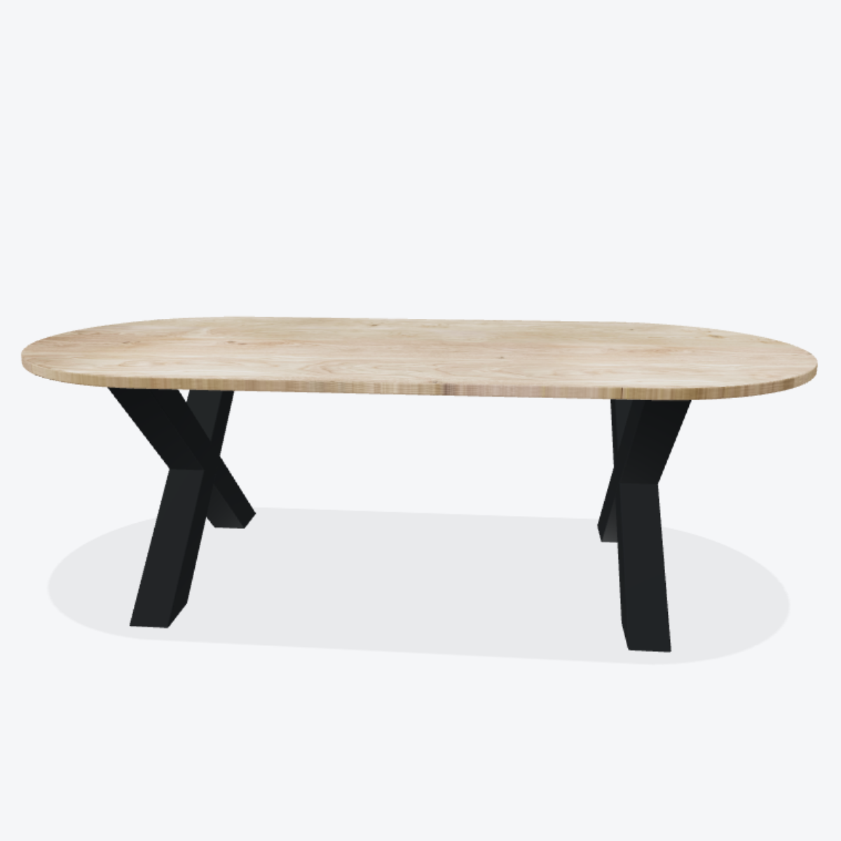 Half Ovaal met X poten – 1.90 × 1.00 × 0.05m
