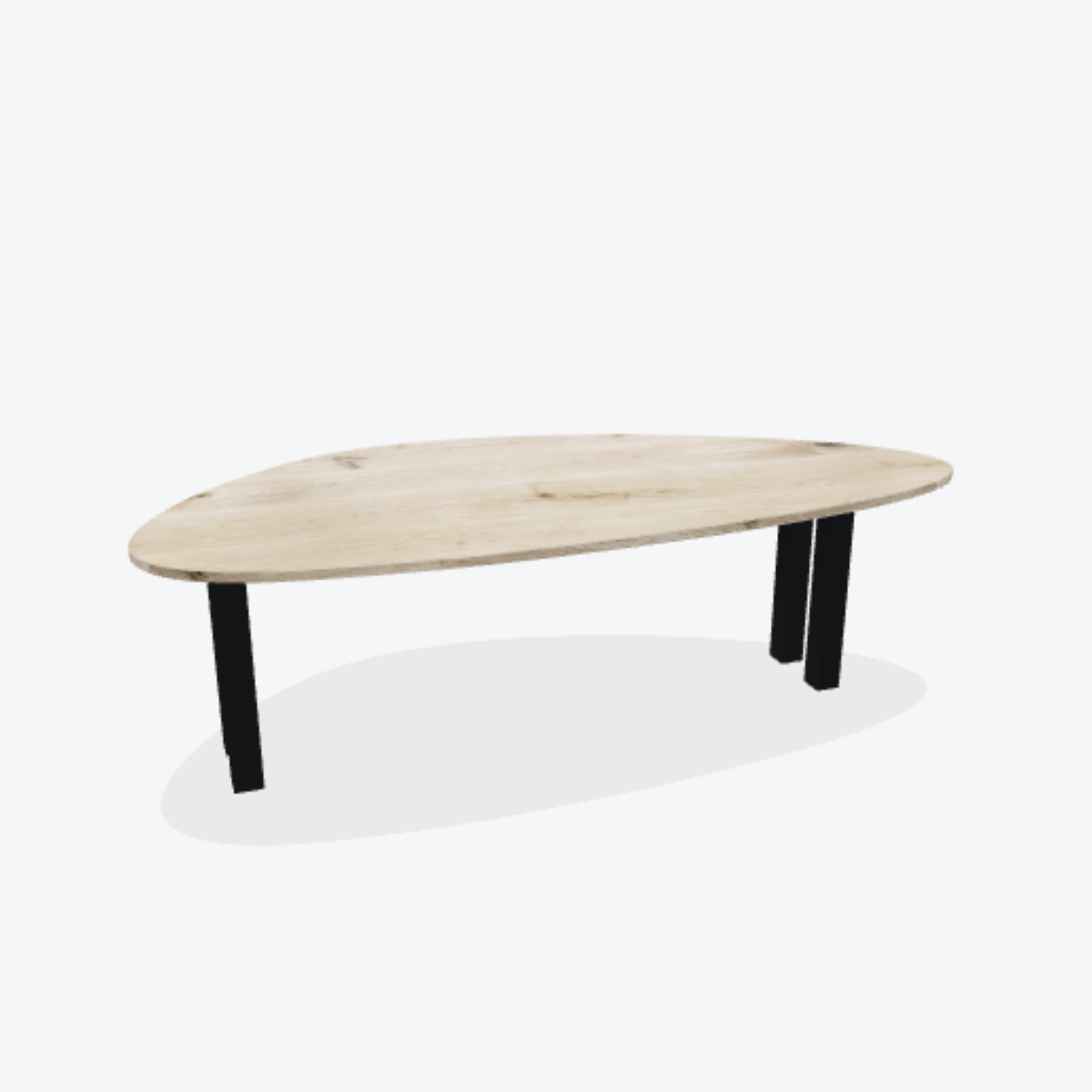 Eiken boomstamtafel met stalen 3D spin poot