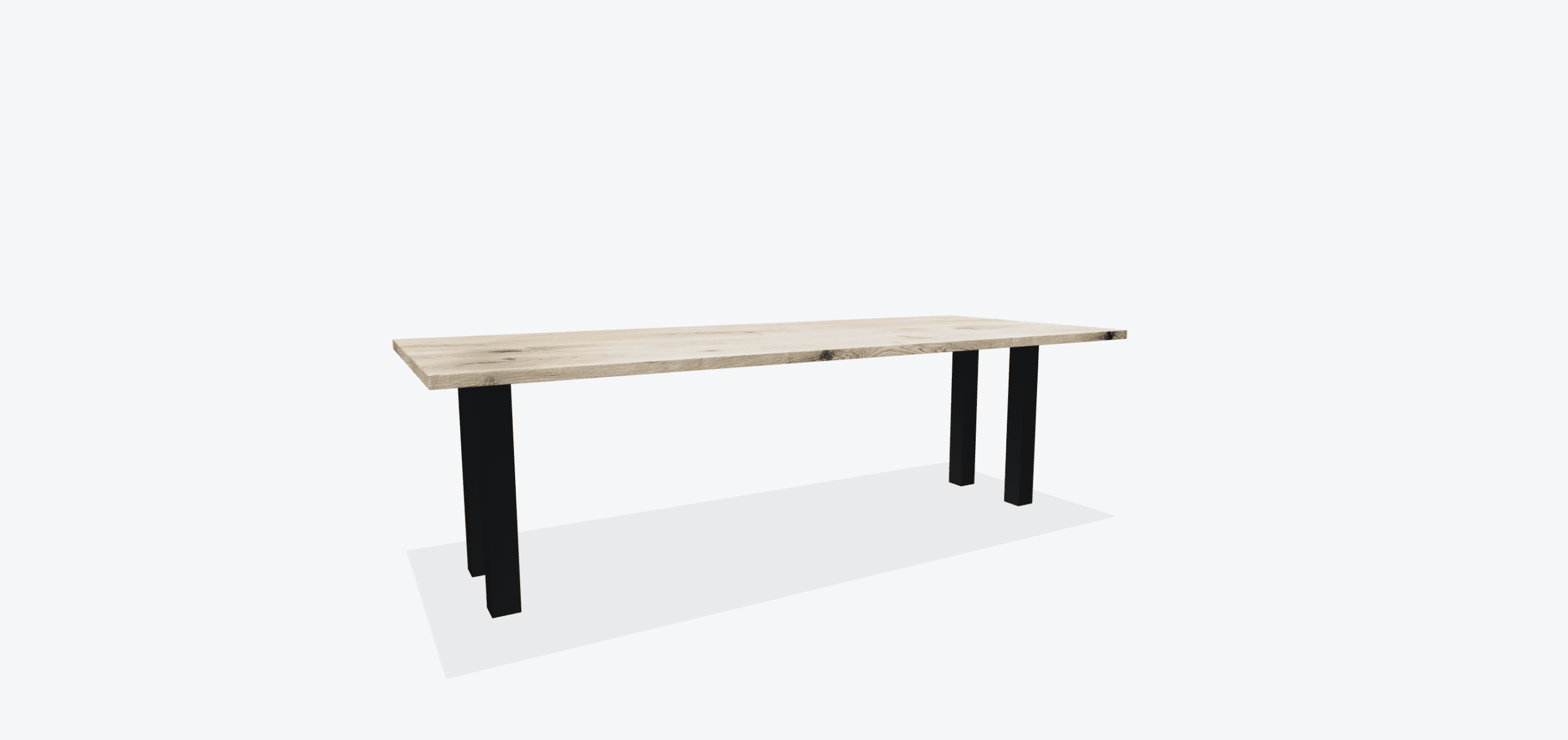 De tafelpoten worden los van het tafelblad geleverd, er zitten zelf tappende schroeven bij die niet hoeven voorgeboord te worden. Zo kunt u zelf ter plekke de gewenste tussenruimte bepalen. De maximale tussenruimte is te berekenen als volgt: Lengte tafel – 25cm = maximale tussenruimte.
