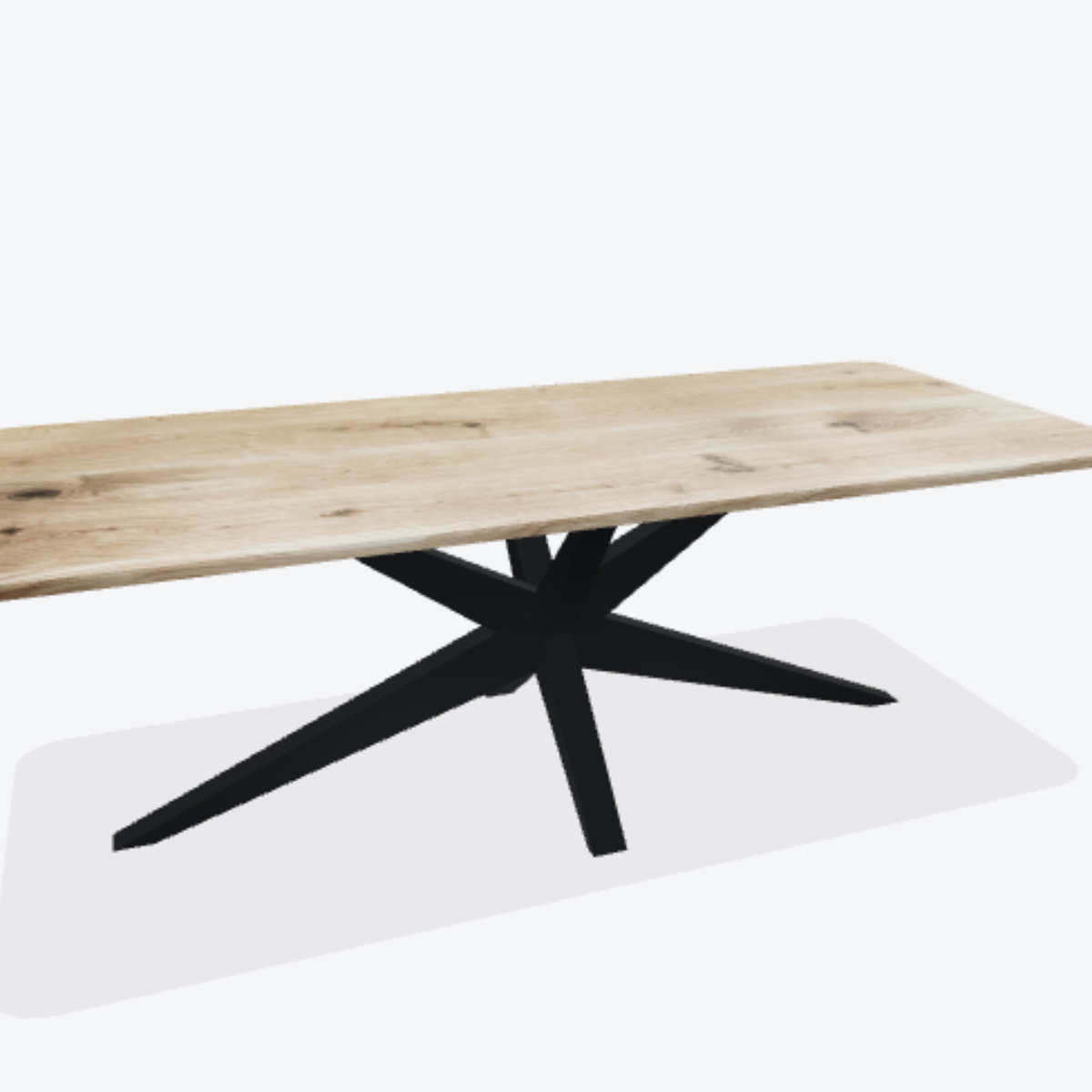 Eiken boomstamtafel met stalen 3D spin poot