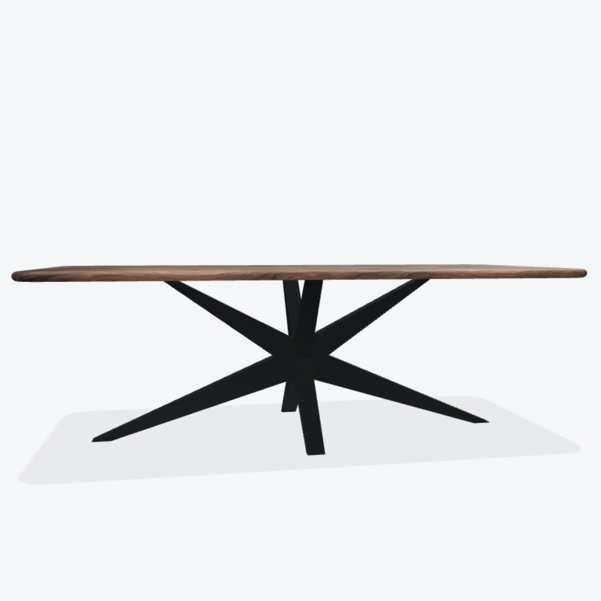 Eiken boomstamtafel met stalen 3D spin poot