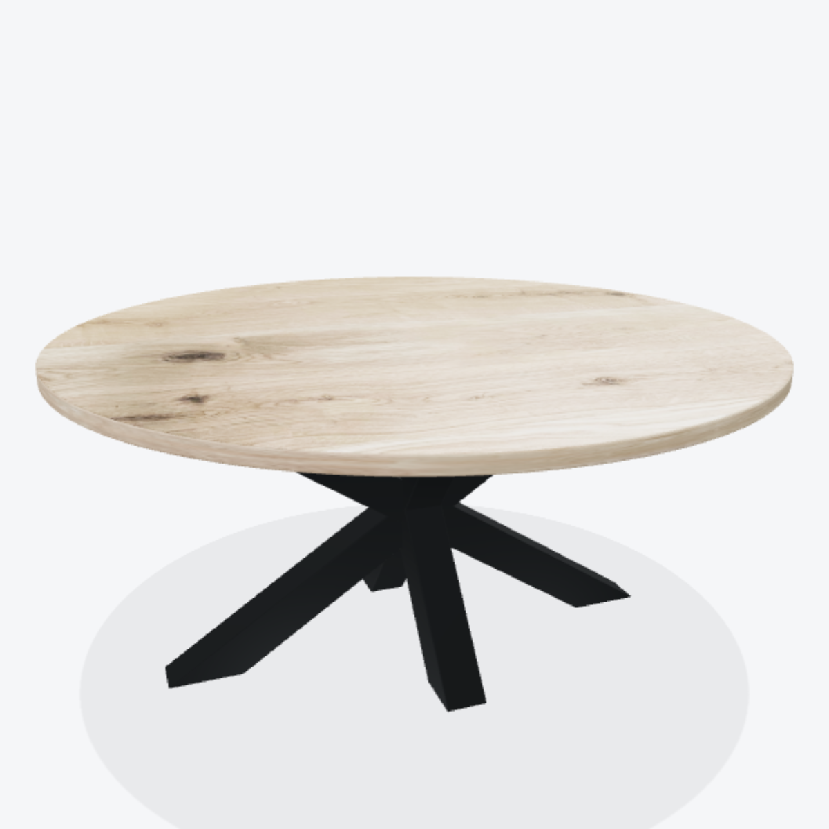 Eiken boomstamtafel met stalen 3D spin poot