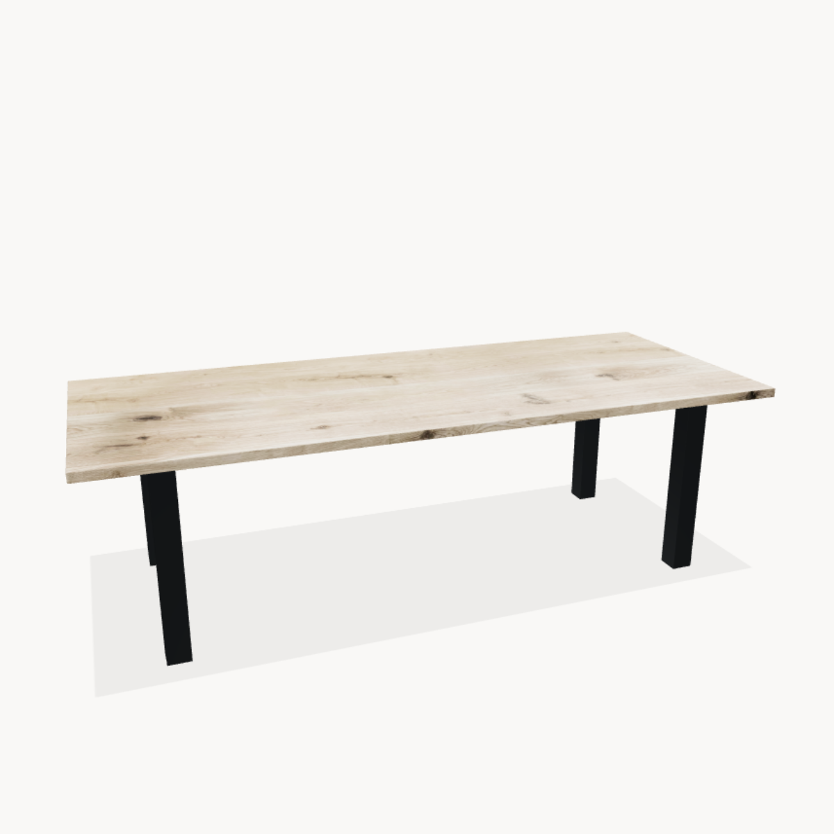 De tafelpoten worden los van het tafelblad geleverd, er zitten zelf tappende schroeven bij die niet hoeven voorgeboord te worden. Zo kunt u zelf ter plekke de gewenste tussenruimte bepalen. De maximale tussenruimte is te berekenen als volgt: Lengte tafel – 25cm = maximale tussenruimte.