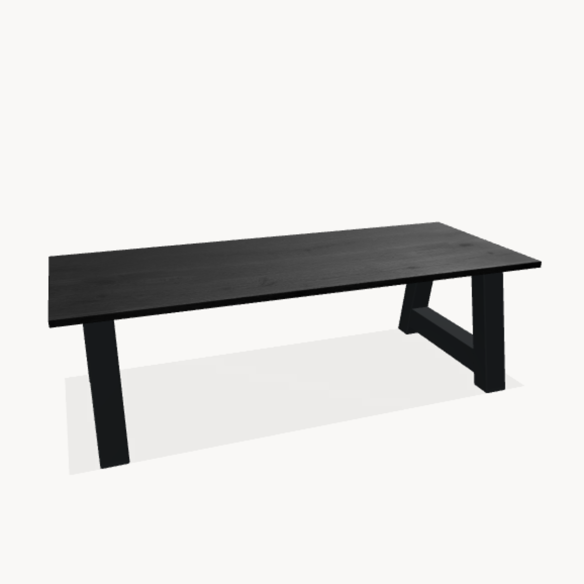 De tafelpoten worden los van het tafelblad geleverd, er zitten zelf tappende schroeven bij die niet hoeven voorgeboord te worden. Zo kunt u zelf ter plekke de gewenste tussenruimte bepalen. De maximale tussenruimte is te berekenen als volgt: Lengte tafel – 25cm = maximale tussenruimte.