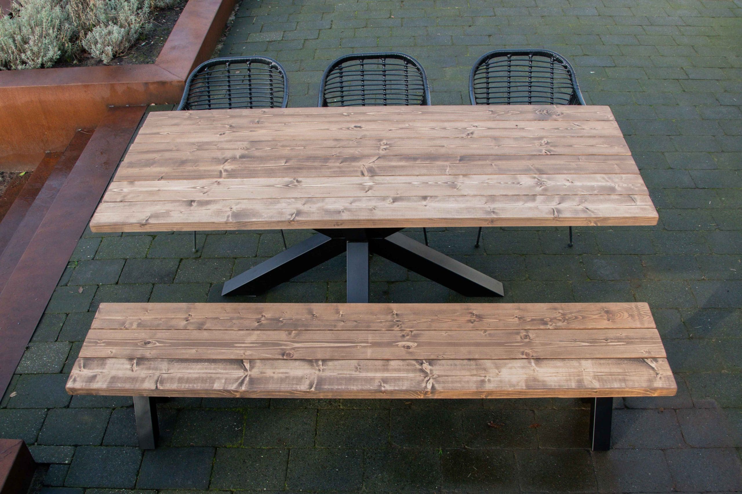 De echte hardloper in de tuintafels bij tafelplein! Deze prachtige tuintafel is gemaakt van gebrand en bewerkt kloosterhout, oftewel de eeuwenoude Shou Sugi Ban-techniek ook wel Yakisugi genoemd. Naaldhout wat volledig wordt verbrand om zo bestand te zijn tegen weersinvloeden dit in combinatie met een speciale bruine Nano coating zorgt ervoor dat het hout niet gaat rotten of verkleuren! Een prachtige tafel in combinatie met een stalen zwart of wit gepoedercoat 3D-onderstel.