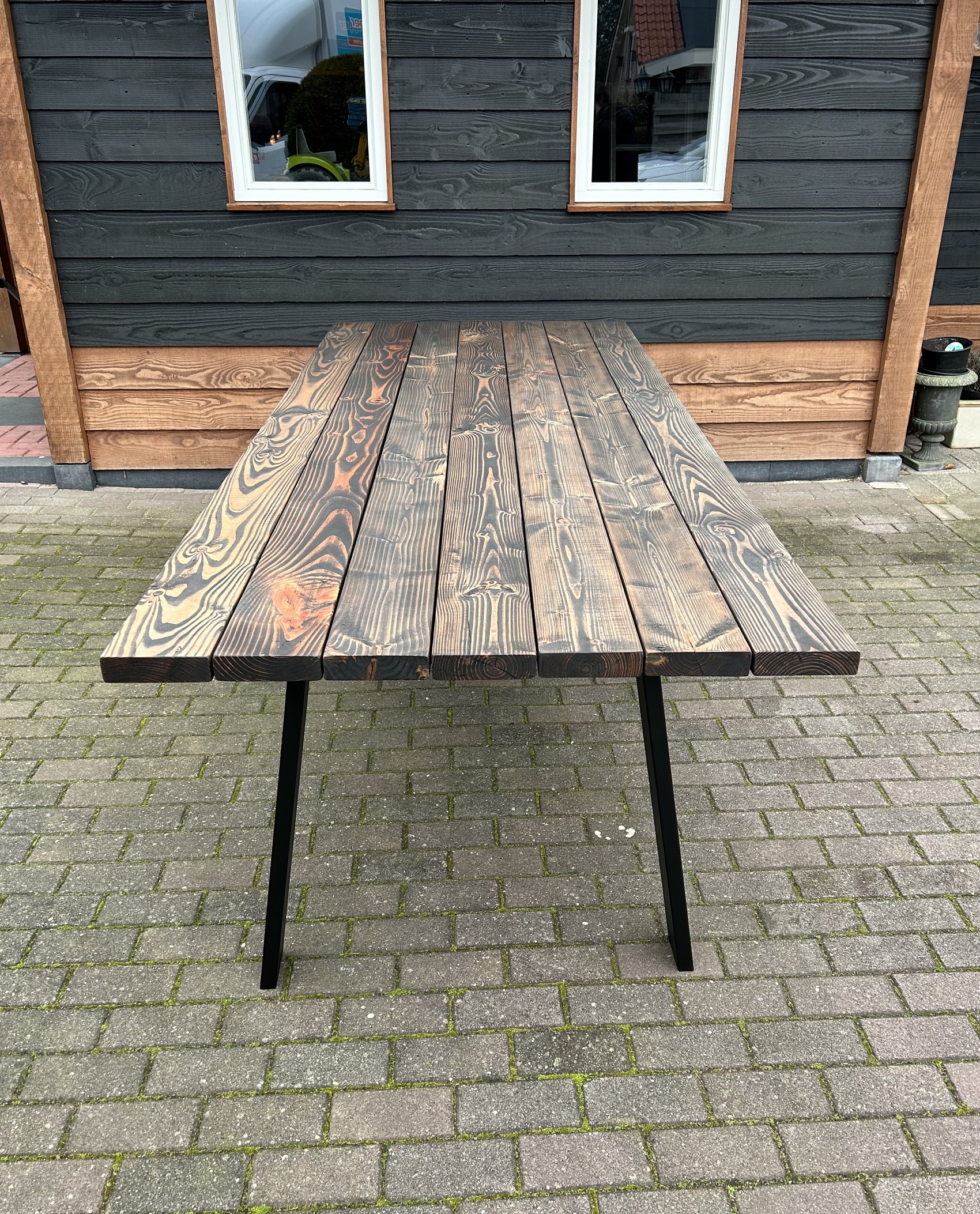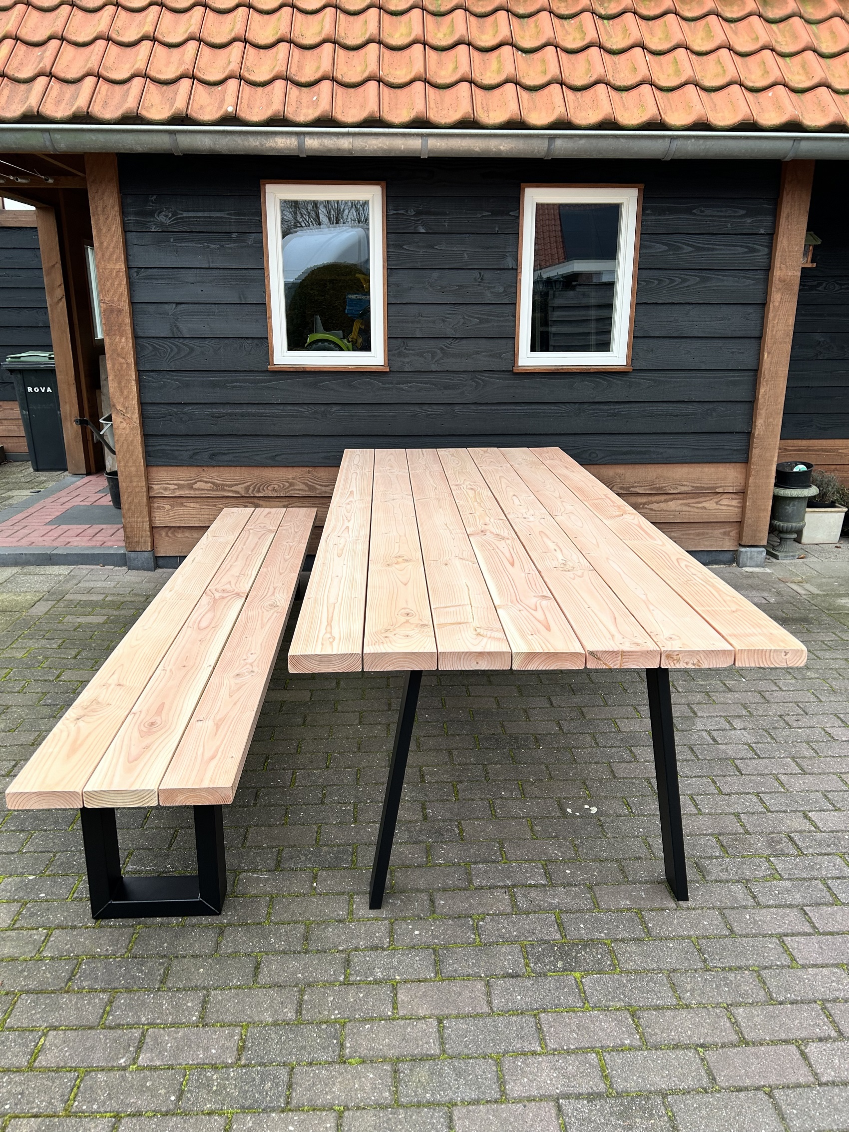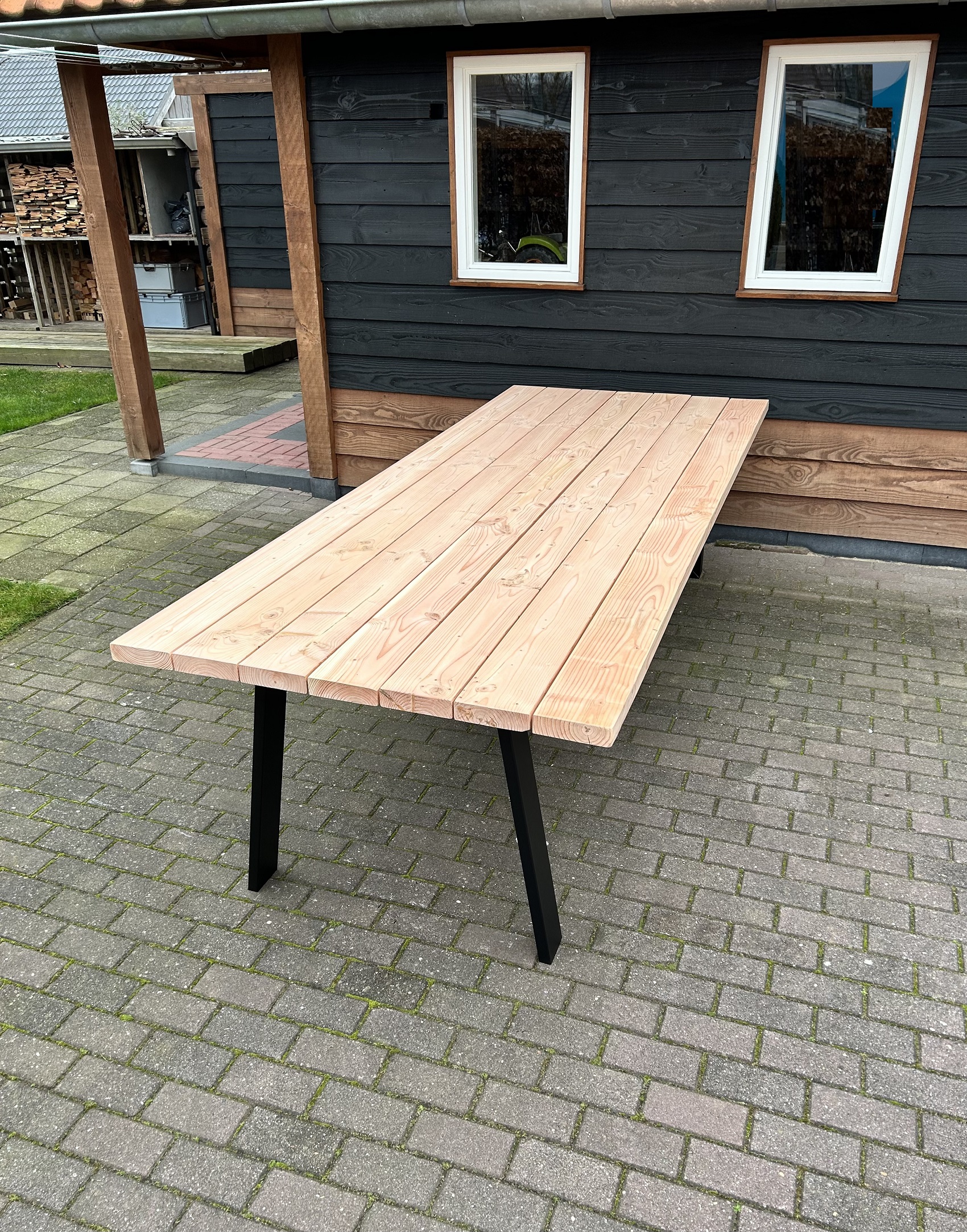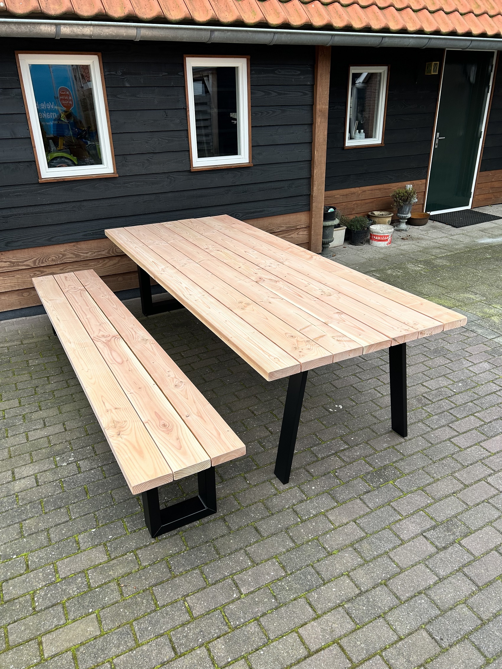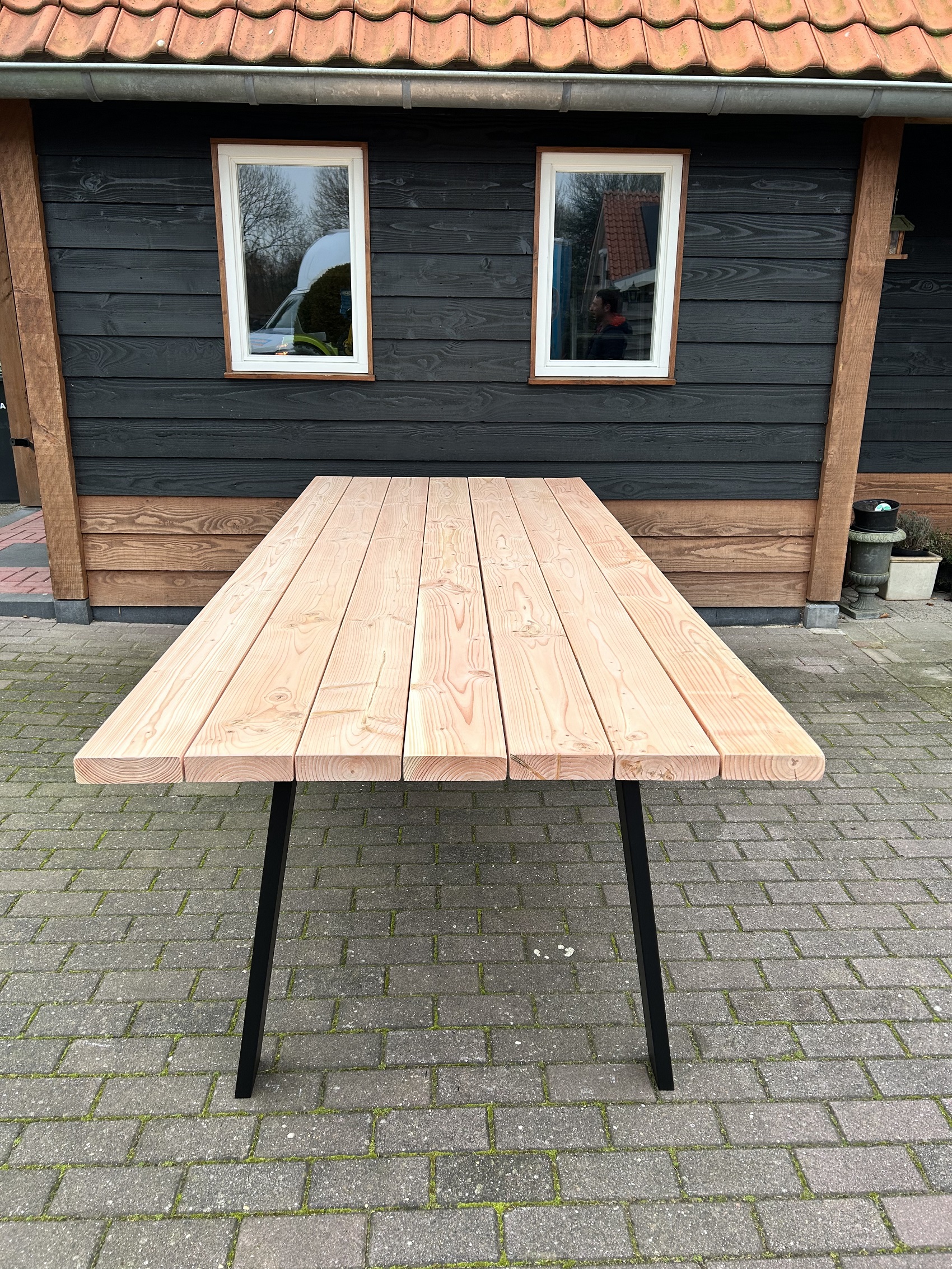 Deze prachtige Douglas tuintafel is gemaakt van +- 4,5cm dik volledig massief Douglas hout.