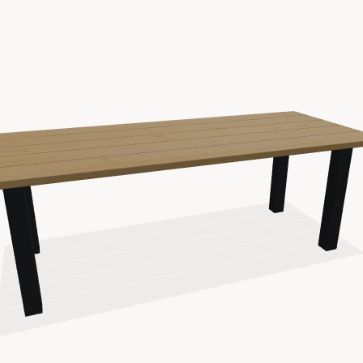 De tafelpoten worden los van het tafelblad geleverd, er zitten zelf tappende schroeven bij die niet hoeven voorgeboord te worden. Zo kunt u zelf ter plekke de gewenste tussenruimte bepalen. De maximale tussenruimte is te berekenen als volgt: Lengte tafel – 25cm = maximale tussenruimte.